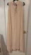 Chic cream maxi dress with pleated design. Features a stylish tie neckline. Ideal for elegant occasions.