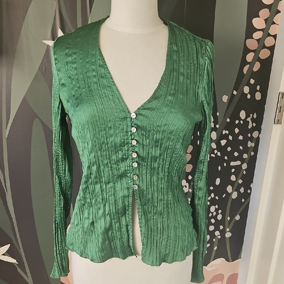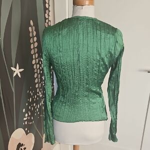 Chic emerald blouse with button detail. Long sleeves and textured fabric.