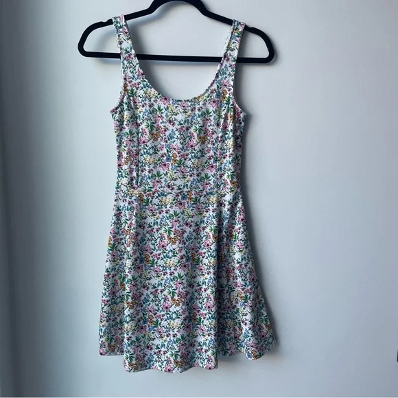 EUC Short, sleeveless dress in sturdy jersey with a deep neckline at the back, seam at the waist and flared skirt