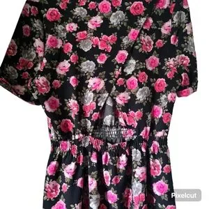 H&M DIVIDED FLORAL PRINT OPEN BACK DRESS SINCHED WAIST SIZE USA 10 PINK AND BLACK