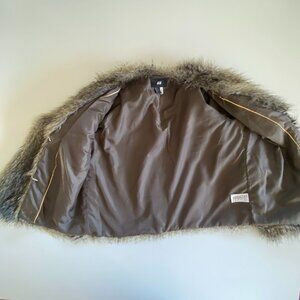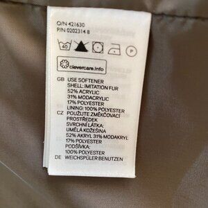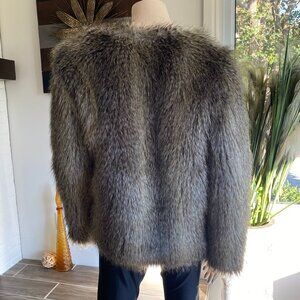 Tag shows sz 14 but this fits me beautifully with a bit of extra room & I wear sz 10. Details: Neutral earth tone, minimalist design, collarless, front pockets, fully lined, eye hook closure. This gorgeous jacket can be worn formally or casually with a variety of styles.