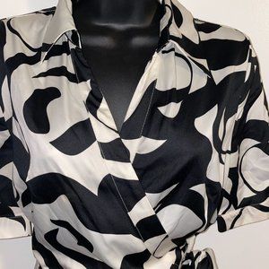 H&M Fit & Flare Wrap Dress Black and White Size 10