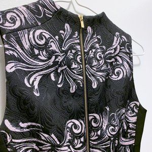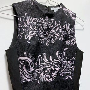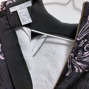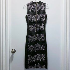 H&M Midi Fitted Jacquard Weave Sleeveless Dress (Size US 2/EUR 32). Comes with spare button. Floral print and embossed pattern with black panels at the side. Fastens at the back with a gold zipper. Beautiful for formal and semi-formal events. Very flattering structured fit. Worn once and washed; in great condition.