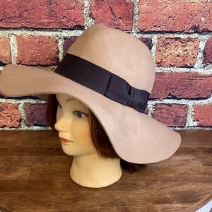 H&M Flare Wool Felt Fedora Neutral Tan with Black Ribbon