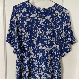 Barely worn H&M blue floral blouse. Beautiful cut that has butterfly sleeves and slight peplum at waist.