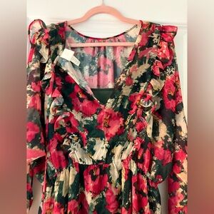 H&M Floral Green Ruffle Mini Dress – M – Excellent Condition