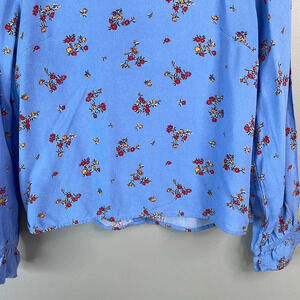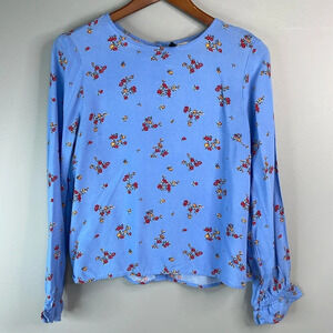 H&M Floral Patterned Viscose Button Back Blouse Corleone Blue Round Neck Size 2
