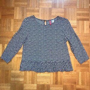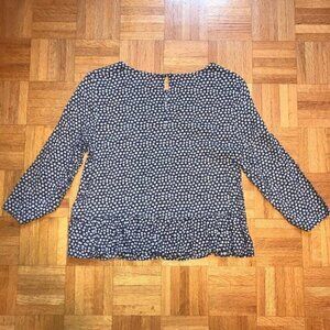 H&M | Divided | Floral Blouse | Peplum Top | Navy Blue | White Flowers | Romantic Top | Feminine Style | Boho Chic | Y2K Inspired | Cottagecore Fashion | Casual Everyday | Workwear Blouse | Lightweight Long Sleeve | Summer Fall Transition
