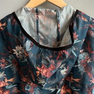 • Blue base with multicolor floral pattern