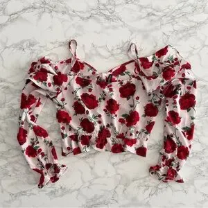 H&M floral long sleeve ruffle top Slightly cropped Open shoulders In excellent condition Size 10 women’s