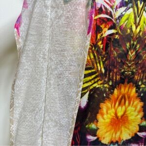 beach cover-up, resort wear, vacation dress, sheer kaftan, tropical print dress, swim cover-up, H&M summer dress, flowy beach tunic, lightweight resort tunic, boho beach style, sheer summer layer, festival outfit, bold print dress, v-neck cover-up, poolside fashion