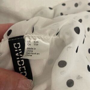 Whimsical tiered, flowy long dress in white with polka dots from H&M. Worn once and in excellent condition, it features a back zipper for an easy fit. Size XXS, but comfortably fits XXS-XS.”