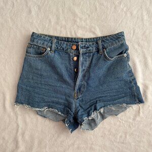 H&M frayed hem blue high-waisted short jean shorts