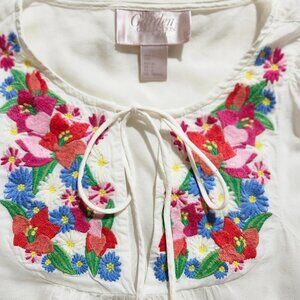 H&M Garden Collection Women’s Embroidered Boho Blouse White Cotton Size4