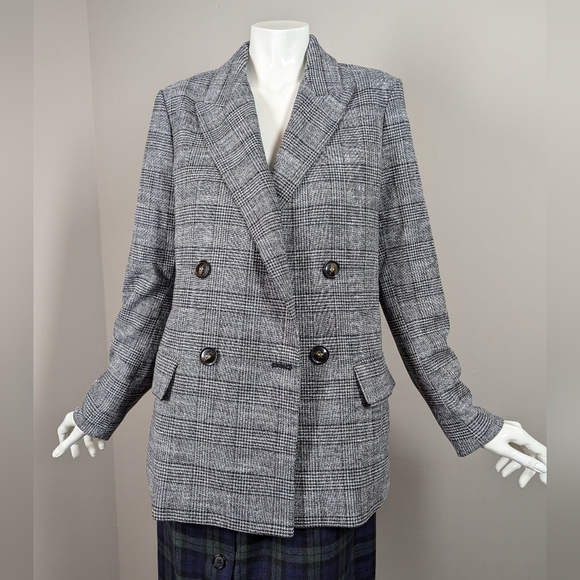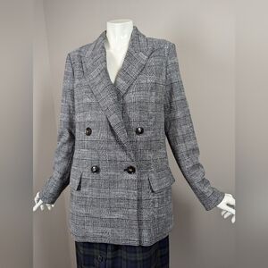 H&M Gray Plaid Double Breasted Blazer Size 6 Oversized Checkered Jacket