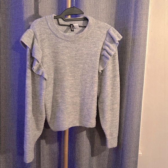 H&M Gray Ruffled Sweater Top