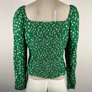 ❤️ H&M Green Floral Peasant Blouse Size M