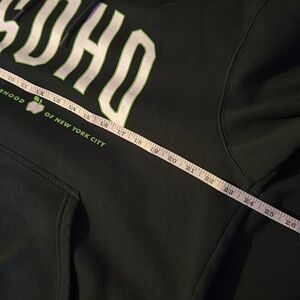 Stylish black hoodie featuring bold white lettering. Ideal for everyday wear. Length 27” PTP 24“