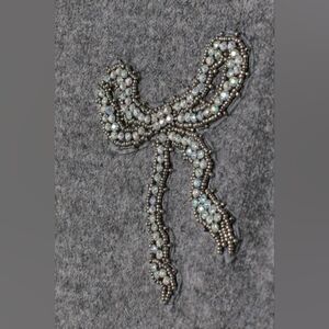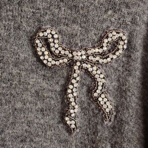 H&M Grey Knit Sweater Bejeweled Rhinestone Beaded Bow Embellishment Size Large