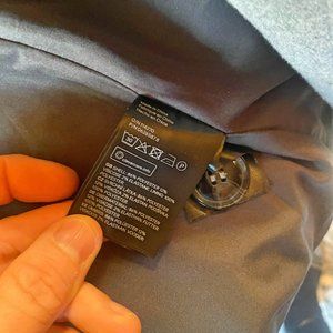 Like new, Size 4 Grey Peacoat H&M Jacket. Double breasted with an A-line cut. High collar, can be worn comfortably buttoned up or open. Black inline fabric, functioning pockets and shoulder straps. Small dot on left arm and small white mark.