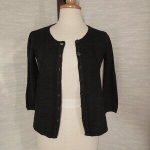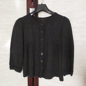 H&M Grey Wool Blend Feminine Button Cardigan Sweater with Ruffles