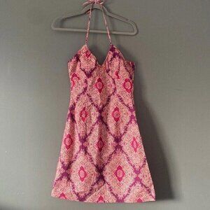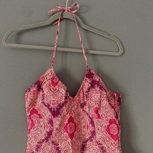 H&M Halter Dress Size 8 Pink Paisley Print Y2K Boho Beach Resort