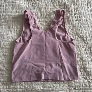 Light purple/lilac colored high neck bra top. Ribbed, race back. Very stretchy material.