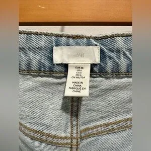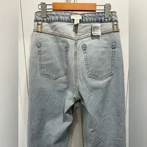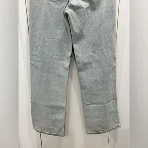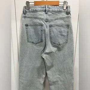 Light blue wash, super high rise, zipper fly with straight leg.