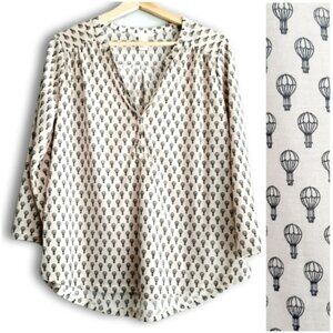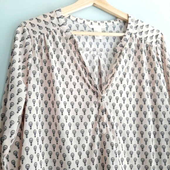 H&M Hot Air Balloon Print V-Neck Shirt Light Fun Novelty Top Creamy Pink Sz M