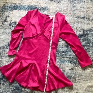 Chic long sleeve dress in hot pink. Super fun flare skirt and mesh details. Extremely flattering, never worn.