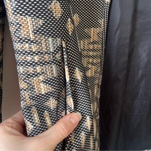 Chic and structured H&M jacquard coat in a bold geometric tribal-inspired pattern. Features a collarless neckline, open front (no buttons or zippers), full lining, and side slit pockets.