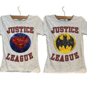 H&M Justice League Reversible Sequins T Shirt Size 6-8 Child Batman Superman