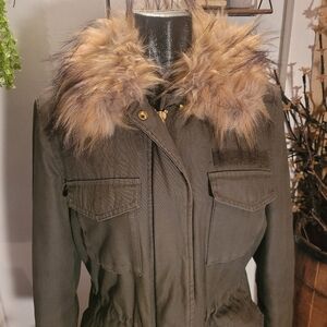 H&M Khaki Faux Fur Collared Winter Coat Sz.4