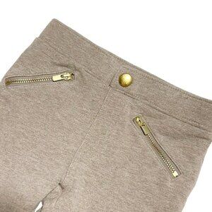 Cute light brown leggings with gold hardware and velour side panels. Nailpolish stain on the one leg shown in pics...I don't have the time to get it out lol. Get them in your bundle with some sweaters, boots and jacket for an adorable closet discount! GUC.