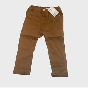 Pants in soft, stretch cotton twill with a concealed, elasticized waistband and mock fly with button. Mock front pockets and regular back pockets.