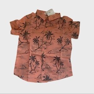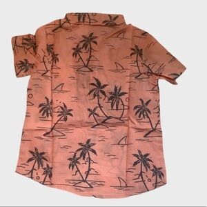 Short-sleeved shirt in airy, woven cotton fabric. Collar, buttons at front, and gently rounded hem.