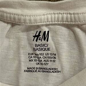 H&M Kids’ white T-shirt, size 10–12.