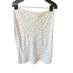 H&M Knee-length skirt - Cream/Floral -Size Large-Elastic Waist-Skirt Only