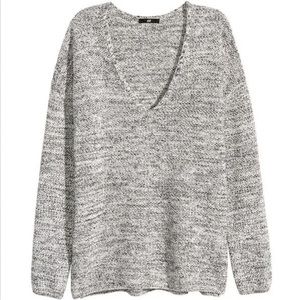 H&M Knit Sweater Women's Size Small Grey White Marled Conscious Cotton V-Neck