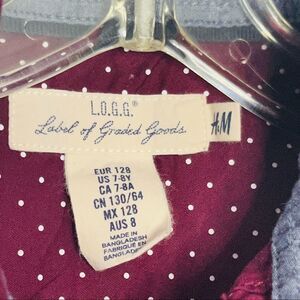 H&M L.O.G.G. Burgundy with White polka dots Button Down Shirt Size 7-8 years