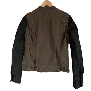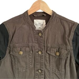H&M L.O.G.G. Women’s Army Green Mandarin Collar Jean Jacket with Black S…