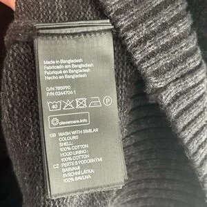 H&M L.O.G.G. dark Grey Hooded Cotton 3/4” Button Up Sweater Hoodie Small