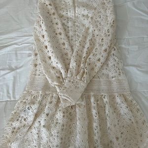 H&M Lace Dress - Short, A-line dress in openwork lace made from recycled polyester. Stand-up collar, opening at back of neck with buttons, seam at hips, and flared skirt. Long, wide puff sleeves and wide, organza-lined cuffs with pearlescent plastic buttons. Unlined. - worn once