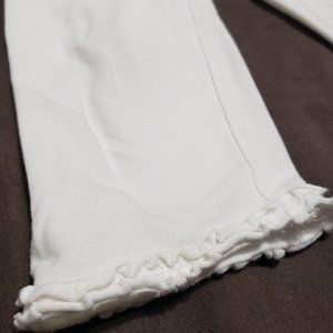 Organic cotton leggings so you can feel good about what your toddler is wearing. Simple white leggings that are easy to match any outfit, for any occasion. The perfect amount of stretch for maximum comfort! Cute simple detail on the bottom of the legs.