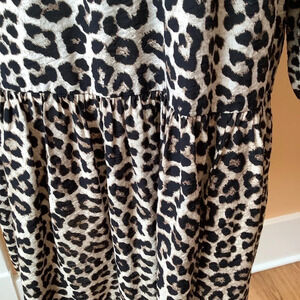 H&M Leopard Drop Waist Puff Sleeve Dress Size S