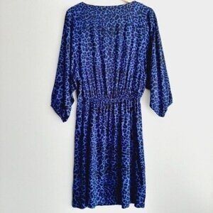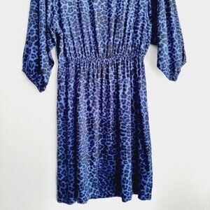 H&M Leopard Print Flowy Mini Dress Blue & Black Sz 6