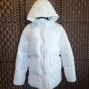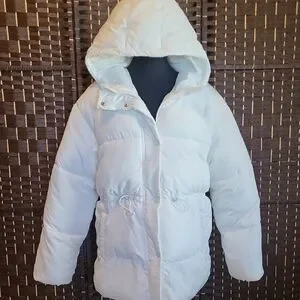 Chic H&M puffer with a snug hood. Features front pockets. Ideal for chilly days.