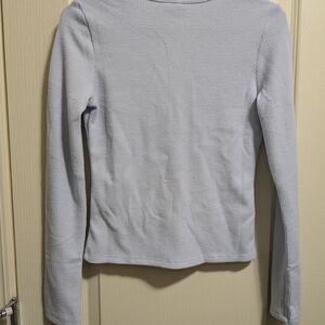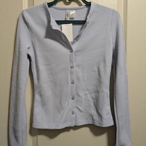Stylish ribbed texture. Button-up front. Long sleeves. Perfect for layering.