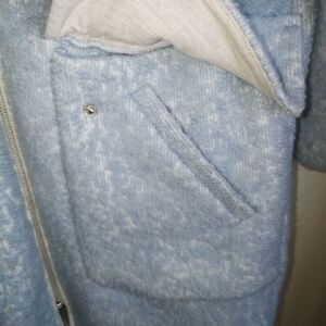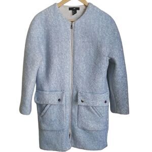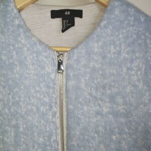 H&M Light Blue & White Wool Zipper Front Flat Pockets Minimalist Boucle Size 4