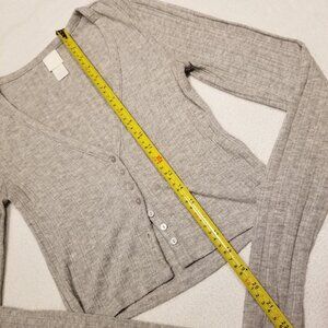 H&M Light Grey Cropped Cardigan X-Small Ribbed Long Sleeve Button Up V-Neck Top